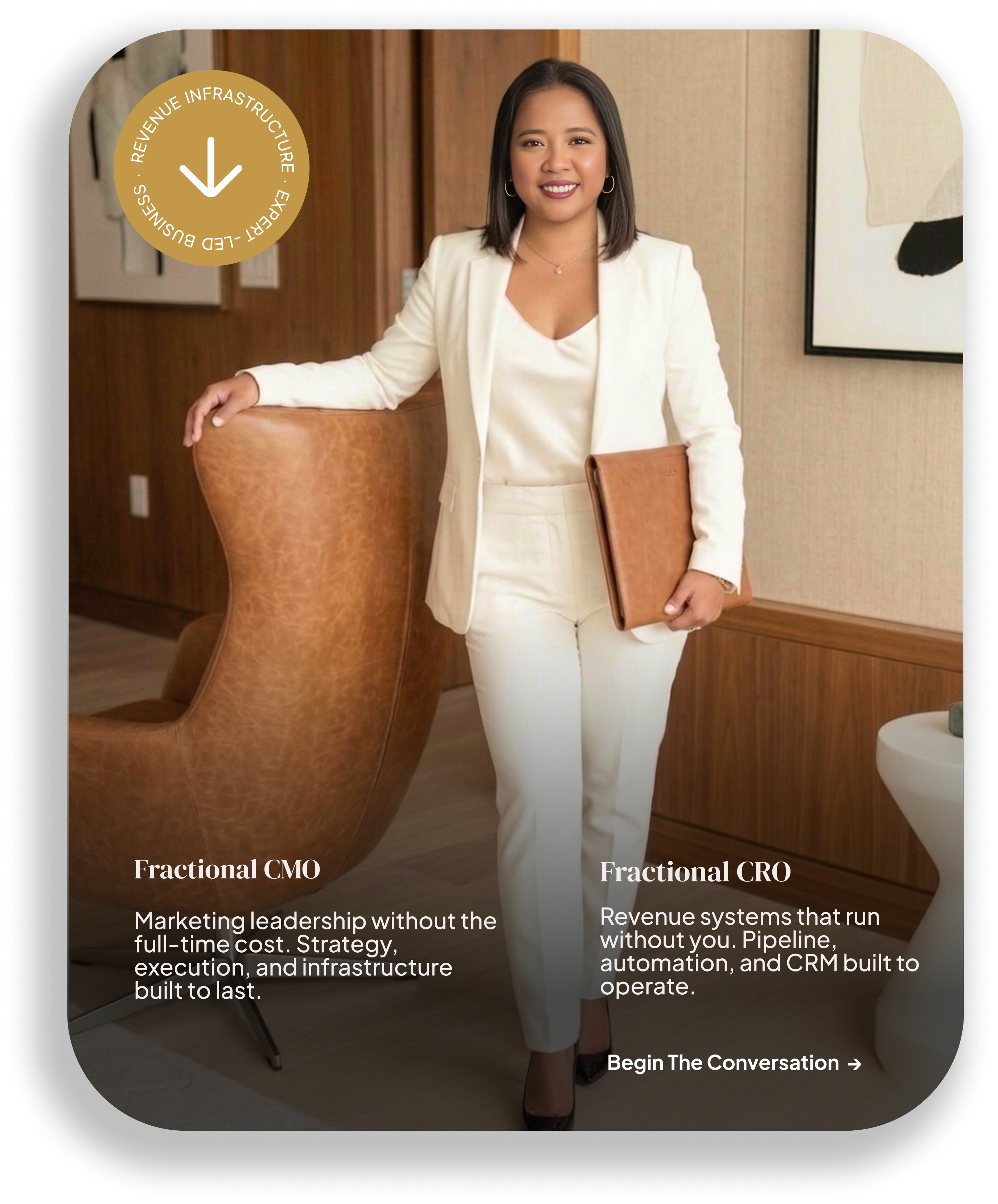 We step in as your Fractional CMO to lead strategy, align your revenue systems, and guide your team toward